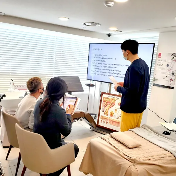 今回研修を受けさせていただいたクリニックも脂肪吸引を得意としているクリニックで、研修も予定していた時間以上の時間を使⽤してしっかり説明いただき、最後に研修の修了証書をいただきました。通訳も少し⼼配していましたが、いざ研修が始まると問題なく意思疎通ができました。当初はクリニックでの研修のみの予定でしたが、空き時間を利⽤して韓国の商材業者とのミーティングをセッティングしていただきました。既に扱っている商材やまだ韓国にしかない商材など様々な商材を⾒せていただき⼤変刺激になりました。今後は違うクリニックで研修を受けてみたいと思いますので、またお願いしたいと思っています。
